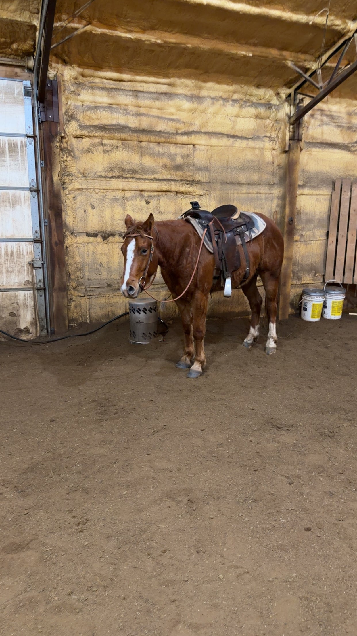 This is Ward. He’s a 3 year old I took in on training. His owner has never ridden him and owned him for about 2 weeks before sending him in. He bought him off a video he saw- and to the credit he was riding pretty nicely. When I got him in he was very jumpy-hard to catch- and liked to buck on the lunge line. I started treating it like a restart and have been following the Es-20 series with Luna and yesterday he had his first ride under me. Worked him on the ground a bit and he did great when I stepped on him! Little stiff to the right but we’ll work on that!